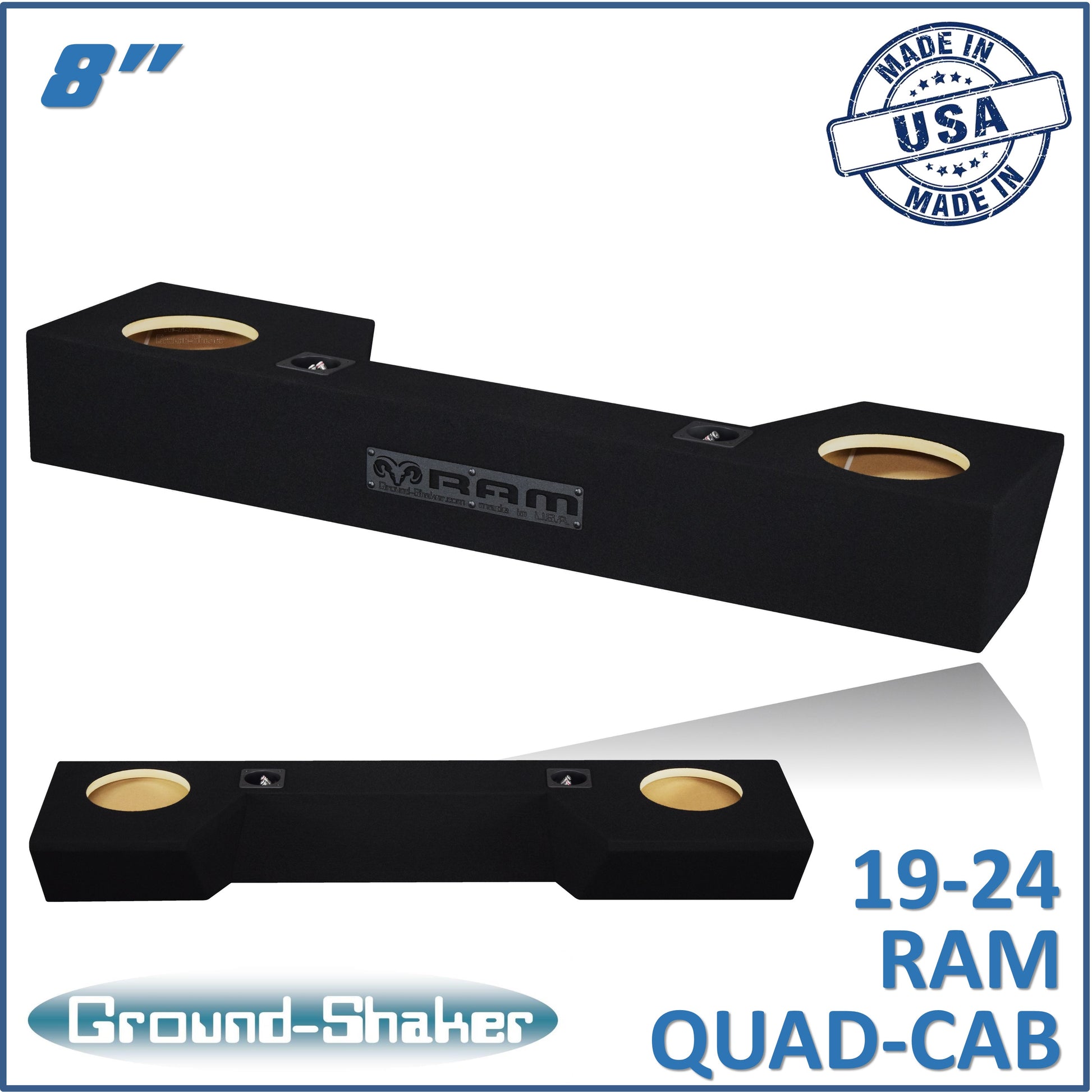 BLACK 8" DUAL SEALED SUB BOX, FITS 19-24 DODGE RAM QUAD-CAB